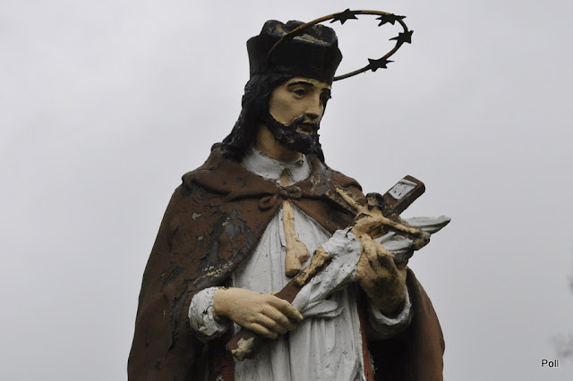 Znajduje się ona ok.50 m od głównego wejścia do kościoła (lewa strona), przy ulicy, zwrócona bokiem do kościoła a przodem do domów, za którymi znajdują się stawy. Ulice są nieco poplątane, ale mogę napisać, iż znajduje się ona między ul Kościelną a Kwiatową (ul ks.Tysznera) i doskonale widać ją miedzy pniami drzew , kiedy przed wejściem do Sanktuarium obrócimy głowę w lewo i spojrzymy nieco w dół. fot.11.11.2015 (2p, razem 5)